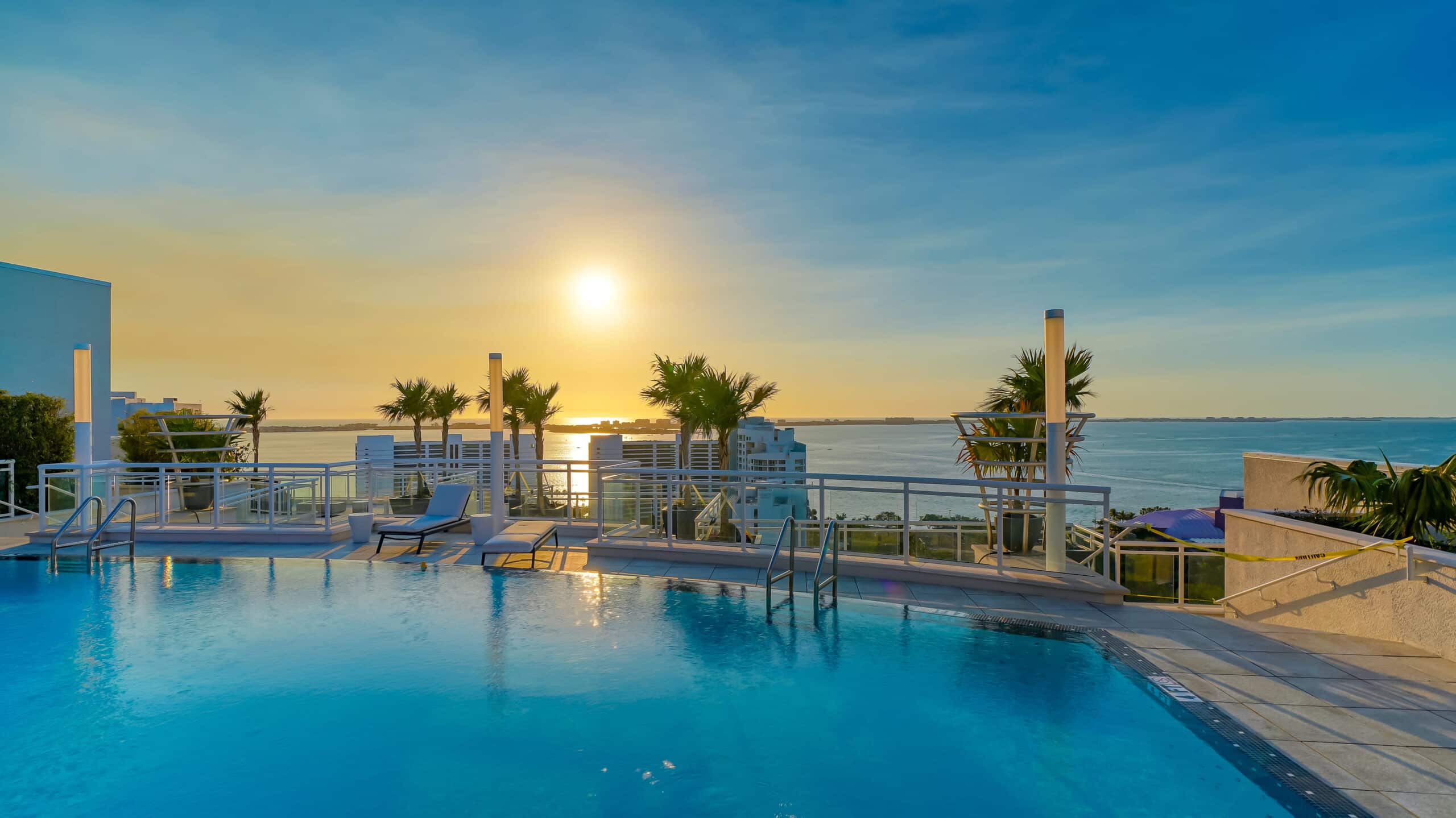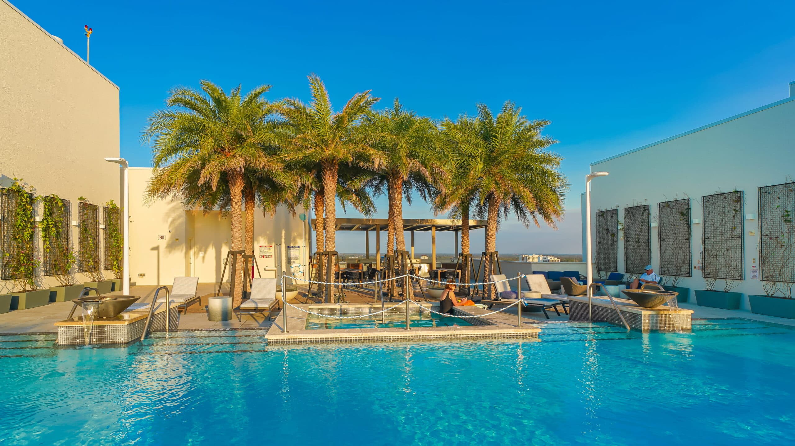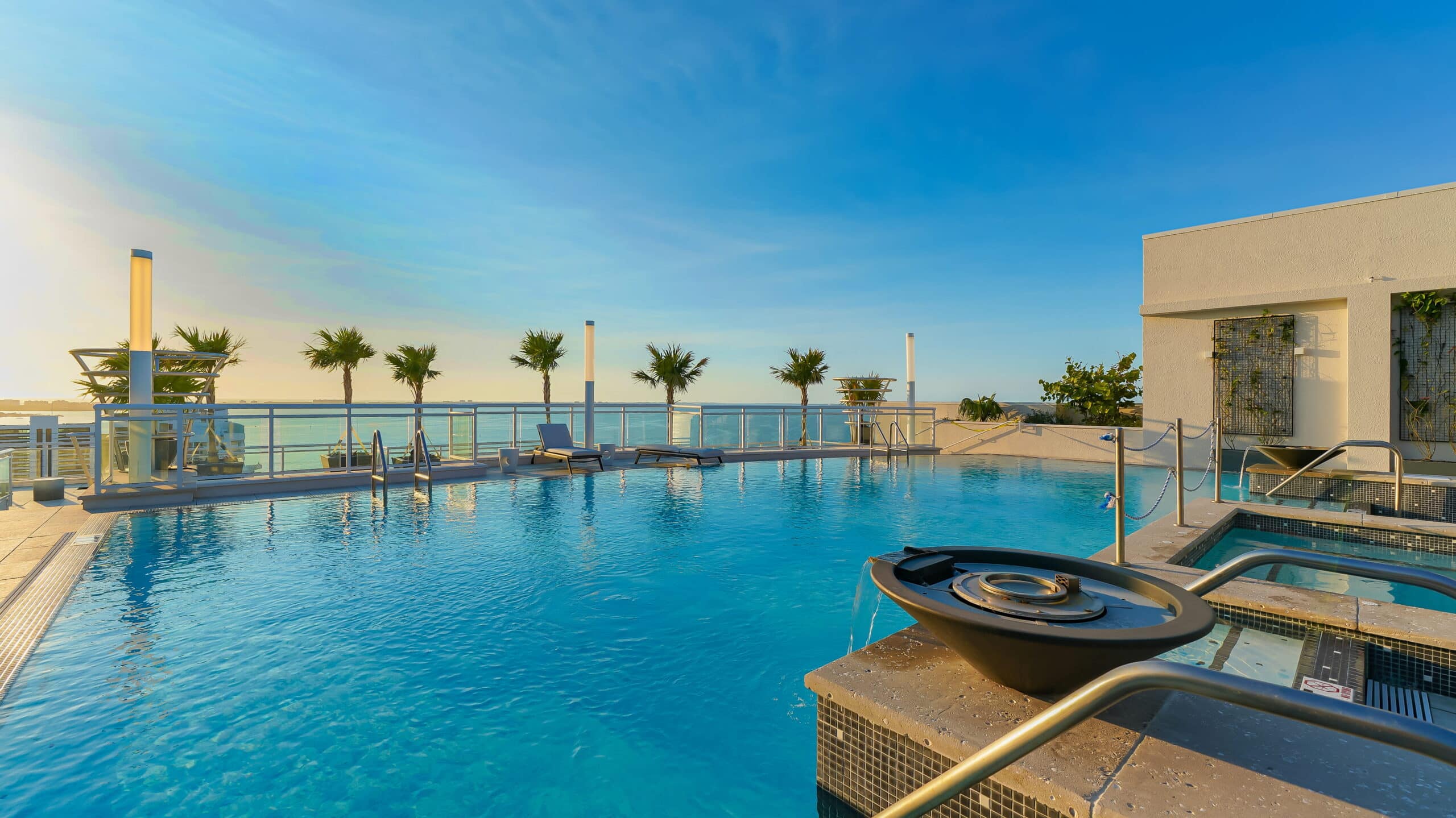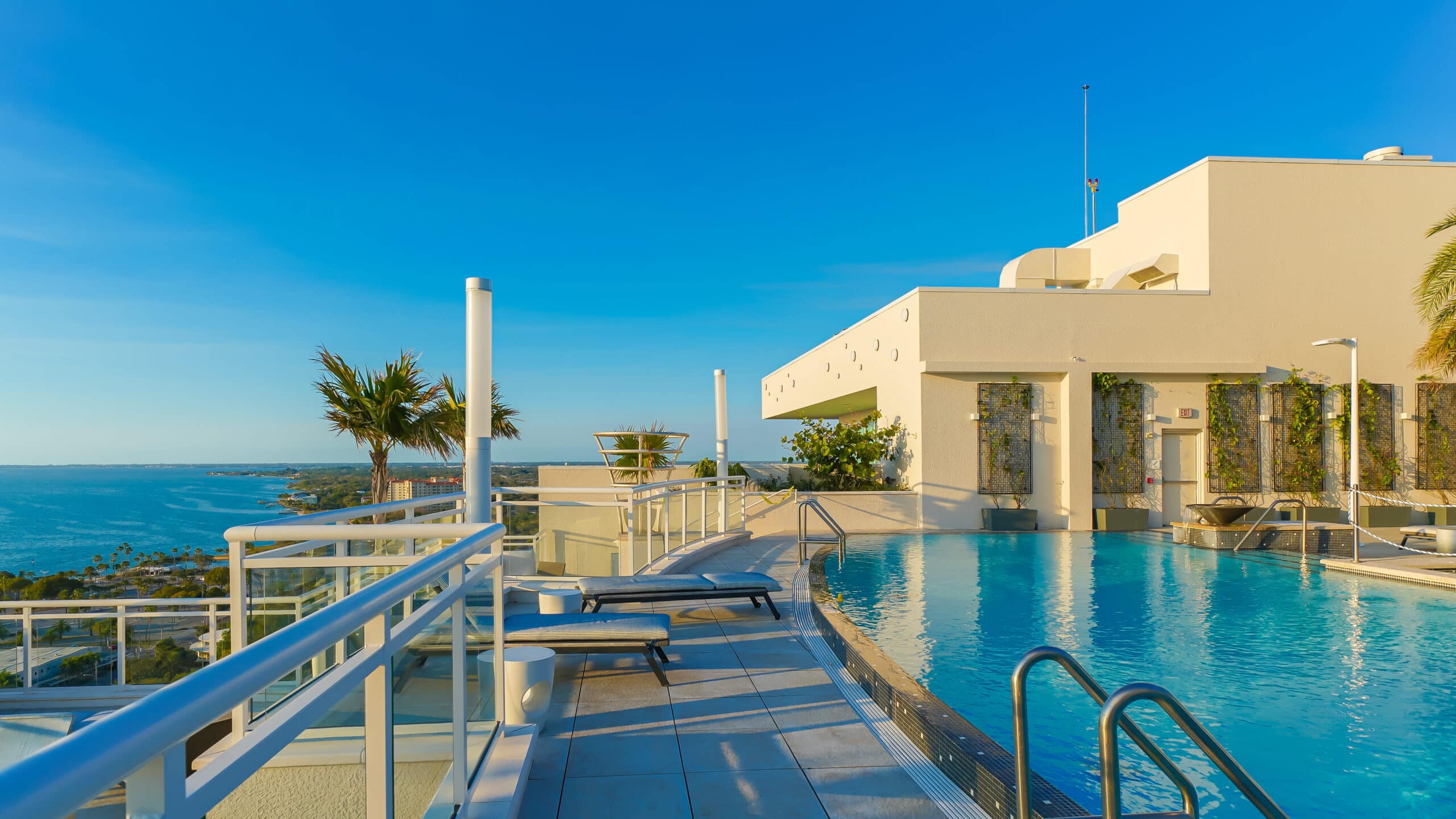 Yes. BLVD features a rooftop pool and outdoor spaces with views of Sarasota Bay, the skyline, and the Gulf of Mexico.