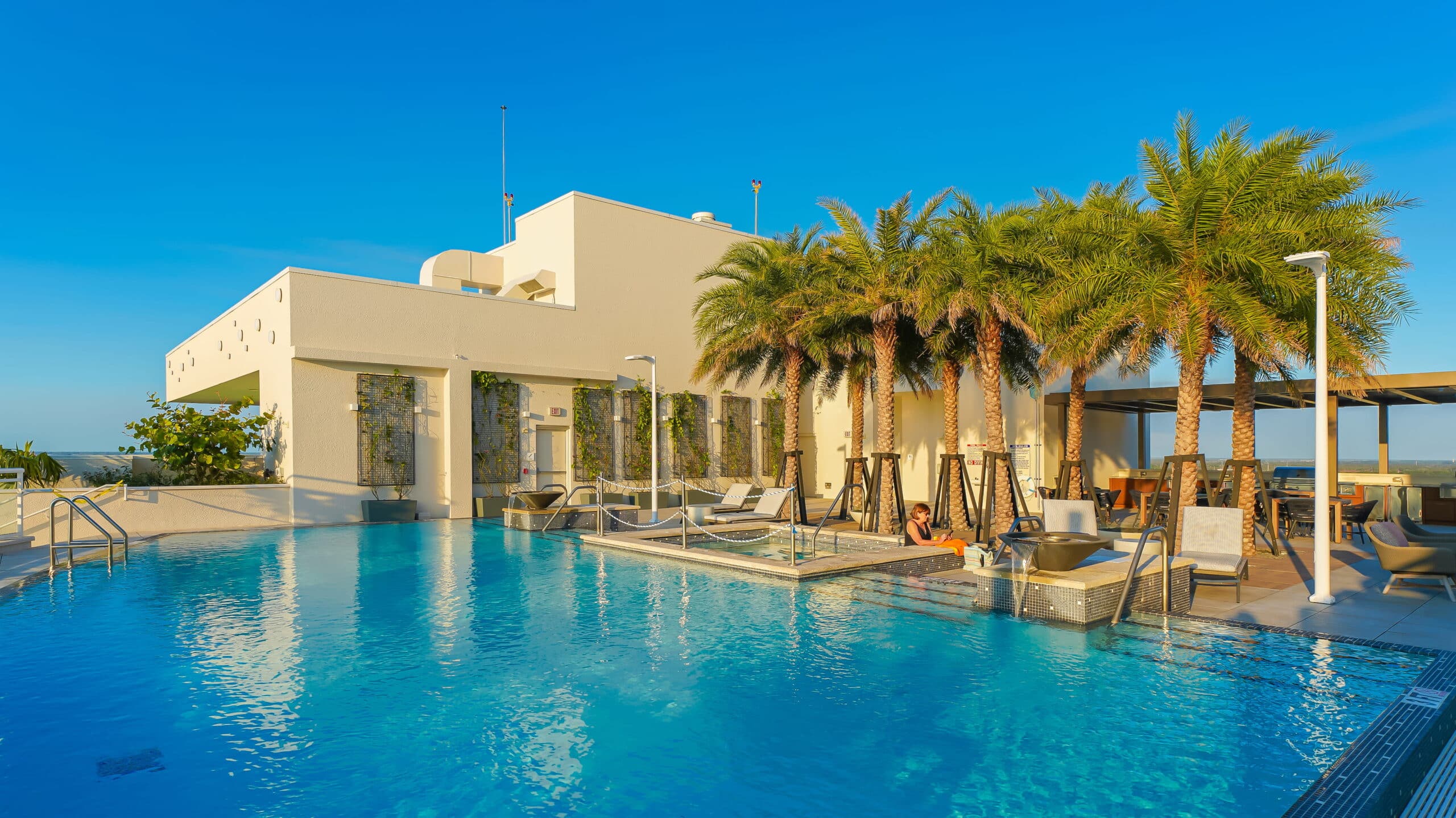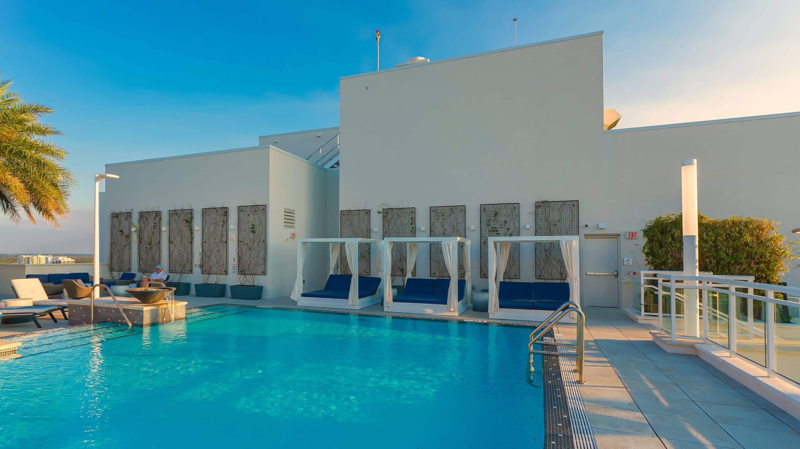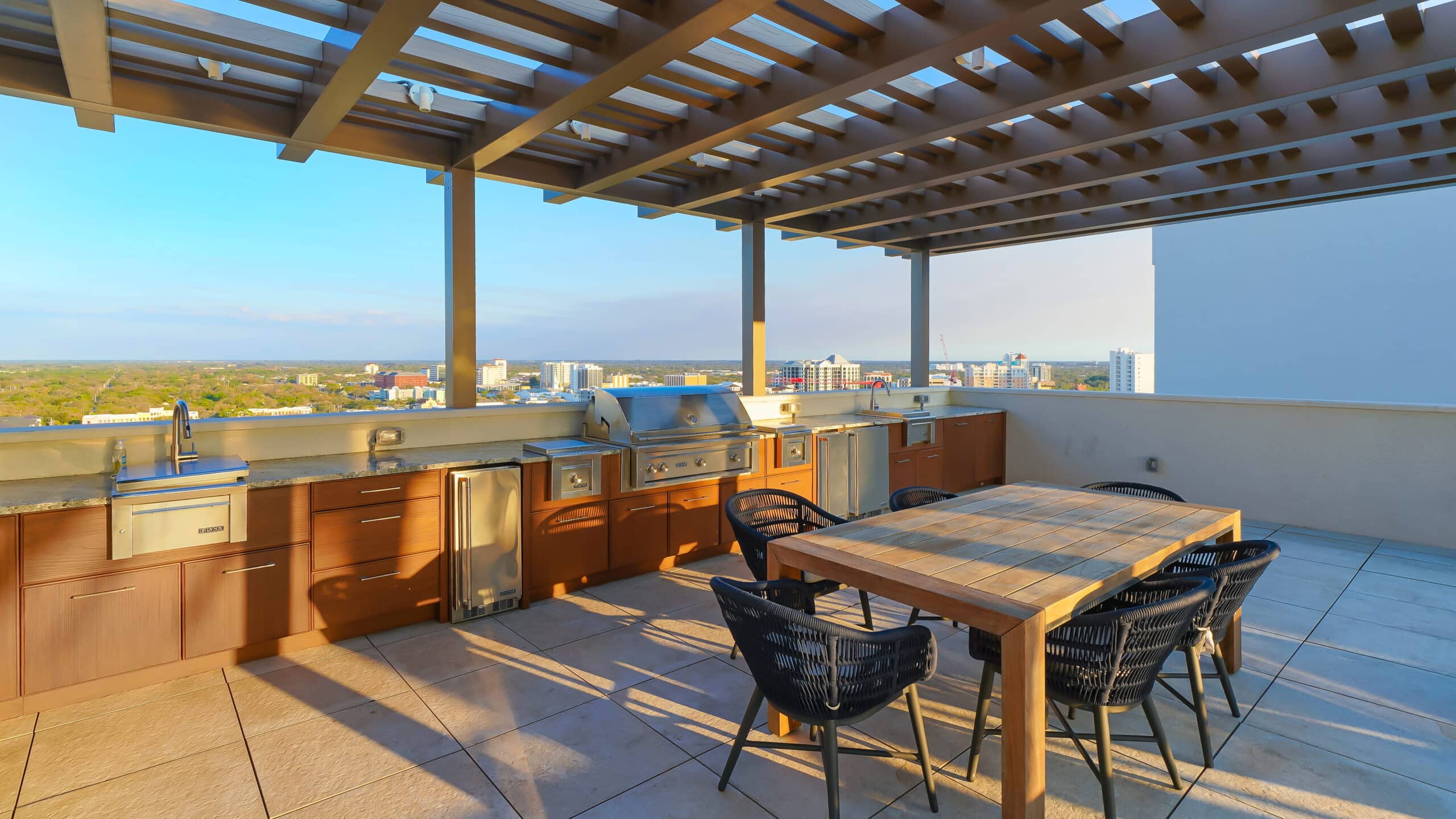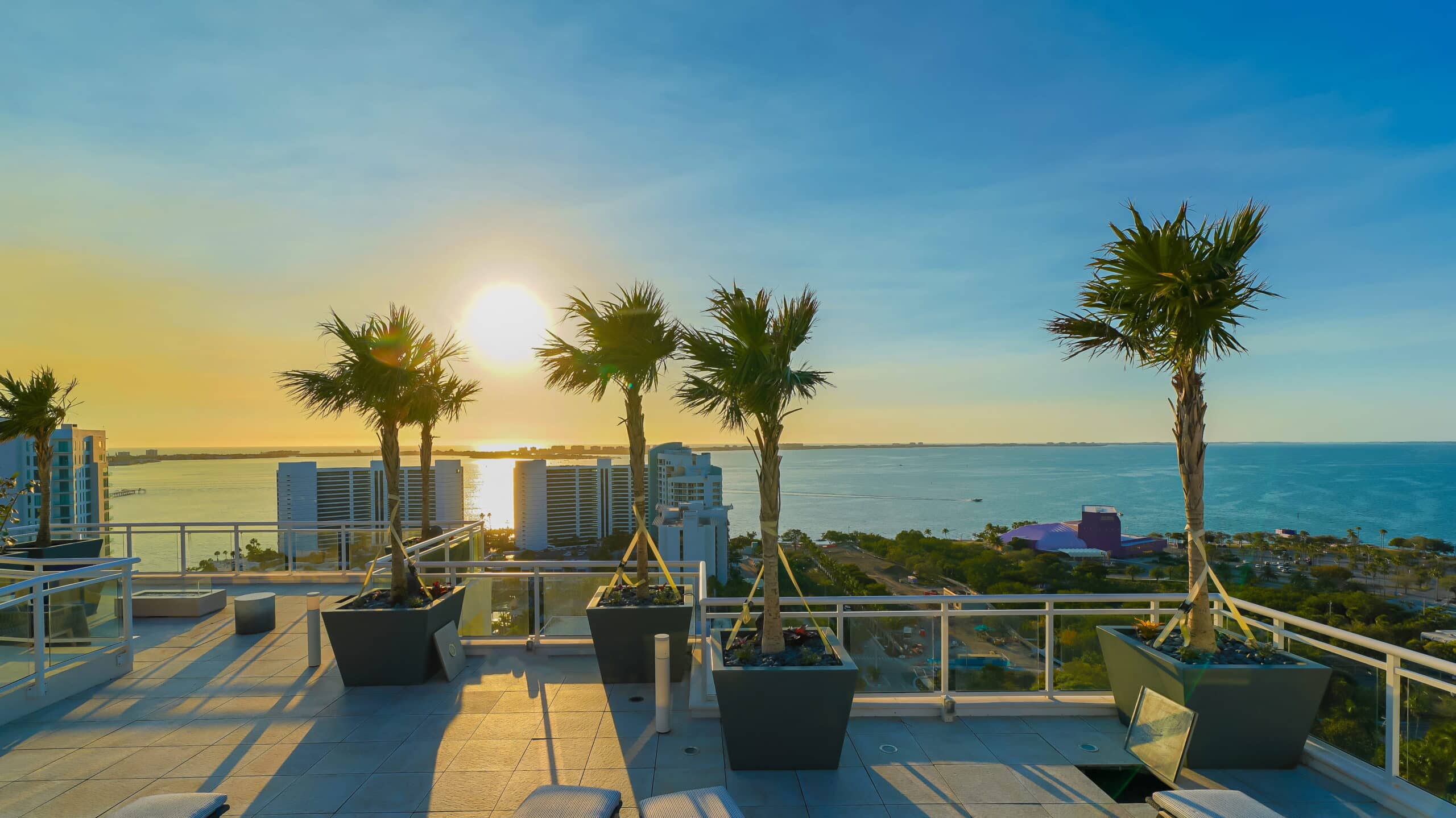 Yes. BLVD features a rooftop pool and outdoor spaces with views of Sarasota Bay, the skyline, and the Gulf of Mexico.
