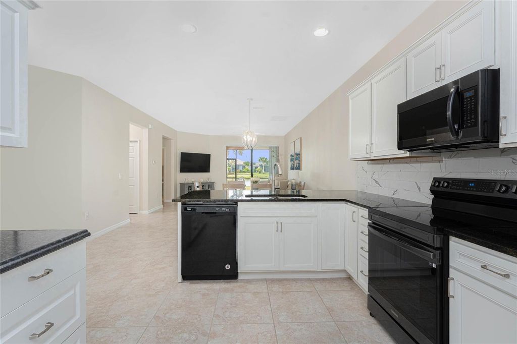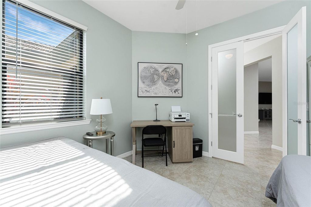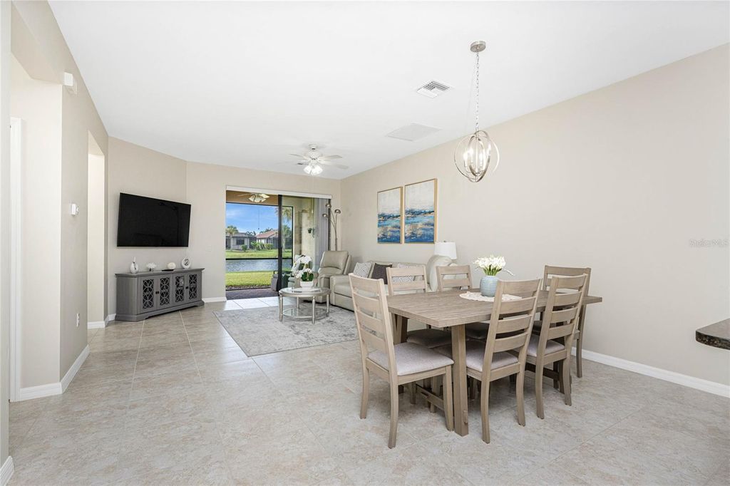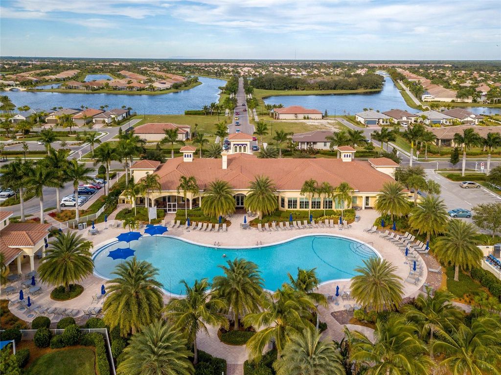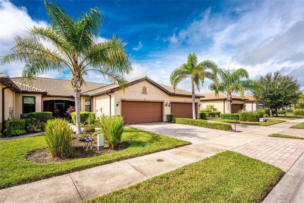 Welcome to this immaculately maintained Seagrove model with a beautiful LAKE VIEW, featuring 2 bedrooms, 2 baths, + den/office/guest room, and an attached 2-car garage! This maintenance-free villa, nestled within the gated community of ISLANDWALK, offers a unique chance to enjoy paradise in one of WELLEN PARK'S most desirable locations, with low HOA fees covering lawn care, cable, internet, resort-style amenities, 24-hour security, and situated in an X flood zone for peace of mind (no flood insurance required). As you enter through the screened front porch, you will find neutral tile flooring throughout and an open-concept layout perfect for both entertaining and everyday living. The split-bedroom design allows privacy for you and your guests, while the versatile den offers frosted glass double doors, providing privacy to use as a third guest room, home office, or quiet retreat. The primary suite enjoys peaceful lake views from two sunlit windows and includes a spacious walk-in closet and an en-suite bath with dual sinks, granite counters, and a walk-in tiled shower. The heart of the home features a spacious kitchen with crisp white cabinetry, sleek granite countertops, and a stylish subway-tile backsplash. A one-level peninsula with bar seating creates the perfect space for entertaining or casual dining. This kitchen also includes a custom built-in dry bar with additional cabinetry "” a tailored upgrade that maximizes space and function, adds counter space, and transforms an otherwise empty wall into a functional storage and serving area. Upgrades include a black stainless appliance package (French door refrigerator, smooth-top range, built-in microwave, and dishwasher), complemented by abundant cabinet storage and recessed lighting. The adjoining living and dining areas flow together, creating the perfect setting for gatherings or simply enjoying the peaceful setting. Step outside to your private lanai and take in tranquil water views "” the perfect spot for morning coffee or evening sunsets. Additional highlights include an epoxy-finished garage floor, ceiling storage racks, a garage ceiling fan, and WHOLE HOUSE ACCORDION HURRICANE SHUTTERS for peace of mind. IslandWalk is one of Venice's most sought-after communities, offering miles of golf cart, walking, and biking trails over Venetian-style bridges. Residents enjoy an active lifestyle with amenities including a 24-hour staffed gate, full-time lifestyle director, event center, 2 CLUBHOUSES, 2 HEATED RESORT POOLS, a HEATED LAP POOL, 2 hot tubs, 2 FITNESS CENTERS, 12 PICKLEBALL courts, HAR TRU TENNIS courts, DOG PARK, playground, basketball, bocce, an outdoor pavilion with BBQ grills and fire pit, a library, and full-time HOA staff seven days a week. From the resident-only side entrance, you can access Downtown Wellen Park by car, golf cart, bike, or on foot. Nearby are the Atlanta Braves Stadium and the vibrant new downtown district, featuring an 80-acre lake with walking trails, shops, coffee spots, restaurants, a splash pad, fishing areas, kayak rentals, and a public town hall and park hosting concerts and a Farmers Market. The adjoining Marketplace offers Publix, restaurants, shops, banks, professional offices, a gas station, and a brand-new Costco minutes away. The community's prime location places you just 4 miles from I-75, with pristine Gulf beaches, airports, Historic Venice Island, and year-round cultural events all within easy reach. Call today for your private showing!