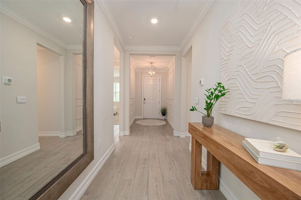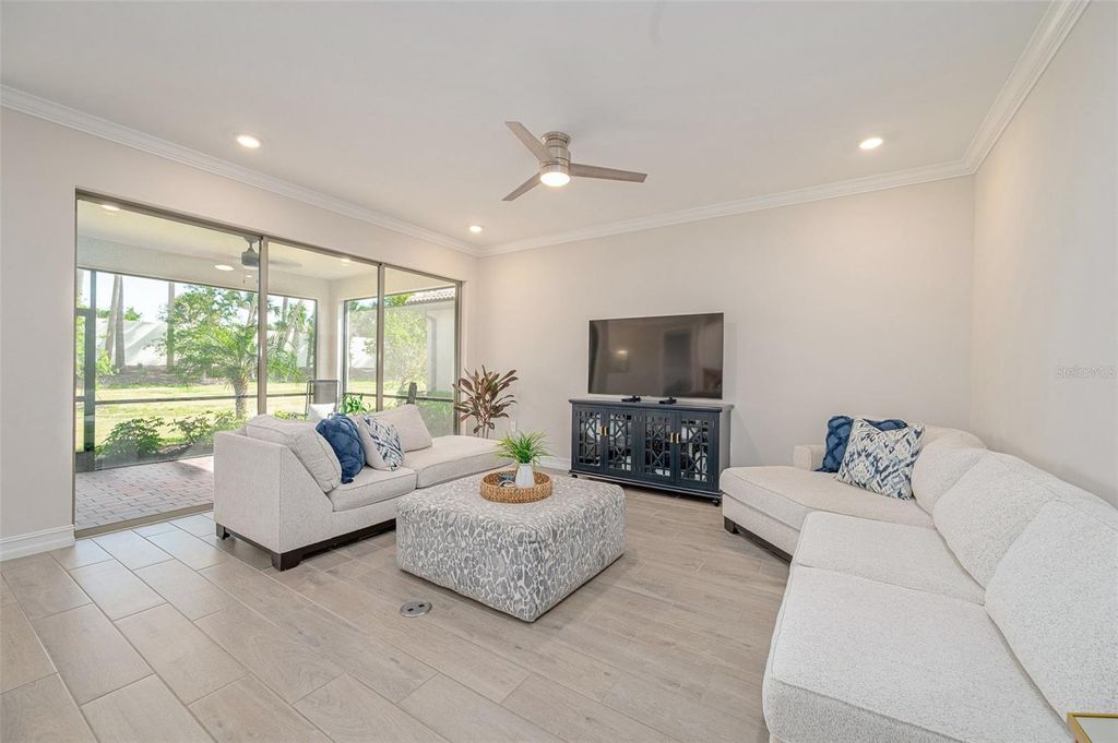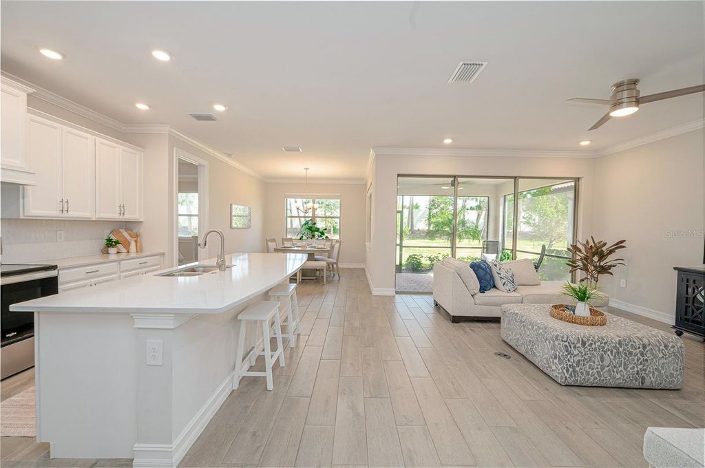 Welcome to this meticulously maintained Charlotte model located in one of the most sought after maintenance free communities of Toscana Isles in the desirable area of Nokomis/North Venice renowned for its active lifestyle amenities and luxurious living. With a prime location that balances convenience and affordable luxury, Toscana Isles is less than 7 miles away to arrive at some of the most beautiful white sandy beaches or be in historic downtown Venice in under 10 minutes. Just 20 minutes North is Sarasota, so this is a great community with easy access to 75. Just minutes away is the new full-service acute care Sarasota Memorial Hospital offering a full slate of medical and surgical care from cardiology to orthopedics. This stunning home is a remarkable 3BR, 2.5BA with a tandem garage perfect for extra storage offering 1,988 sqft of well designed living space. The open concept floor plan perfect for entertaining welcomes you with gorgeous tile plank flooring, elegant crown molding, beautiful woodwork in the front entry and the home is designed with high ceilings throughout making the rooms feel light, airy and spacious. The heart of the home features a chef's kitchen delight with a stunning large white quartz island, a beautiful new stylish tile backsplash, new custom hood & range hood, timeless white cabinetry, stainless steel appliances and a well appointed pantry. The living room is designed for complete convenience right off of the kitchen and dining, sliding glass doors to the peaceful screened in lanai with updated light fixtures and fans, highlighting an upgraded floor outlet great for your everyday electronics. Retreat to the spacious primary suite, complete with an oversized walk-in closet, opposite wall his-and-hers sinks and a large walk-in shower. The huge primary closet conveniently connects to the laundry room for added everyday ease. The home has been enhanced with AC soft start and antimicrobial UV lights with an added upgrade in the primary bathroom for extra peace of mind. Step outside to enjoy the large backyard, perfect for your vision of adding a refreshing year around salt water pool or can be fenced in for privacy. Additional highlights include 2.5 car garage, ideal for a golf cart or motorcycle parking, with ample attic storage space, home hookup for generator connection and each window is equipped with hurricane shutters. The Tuscan inspired curb appeal with a tile roof, brick walkway and driveway and mature landscaping add to the beauty of this well maintained home. Dive into relaxation with a resort-style infinity-edge pool or maintain your fitness routine in the state-of-the-art fitness center. Join friends for a game on the pickle ball courts with this active resort style community surrounded by beauty and nature. The community offers an infinity edge pool overlooking stunning lake views, an amenity center with over 8,000 sq ft with an onsite lifestyle director, state of the art fitness center, lakefront activities room, pickle ball, tennis courts, bocce courts, game rooms, aerobics and yoga studio, catering kitchen, playground, kayak launching dock, a large fire pit and a friendly dog park. Residents are also permitted to go fishing, kayaking, and canoeing on more than 200 acres of ponds within the community. Don't miss the opportunity to live in a home that shows just like a model that provides a fabulous lifestyle with upscale amenities and endless activities. Schedule your visit today!
